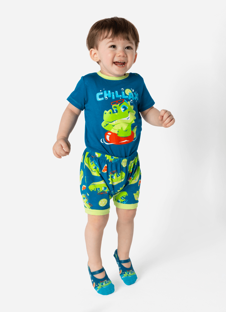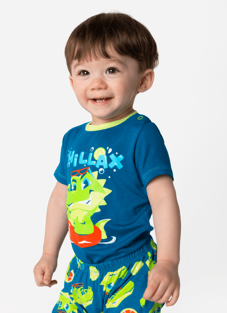 Pijama Manga Curta Viscolycra Bebê Menino Jacaré Relax