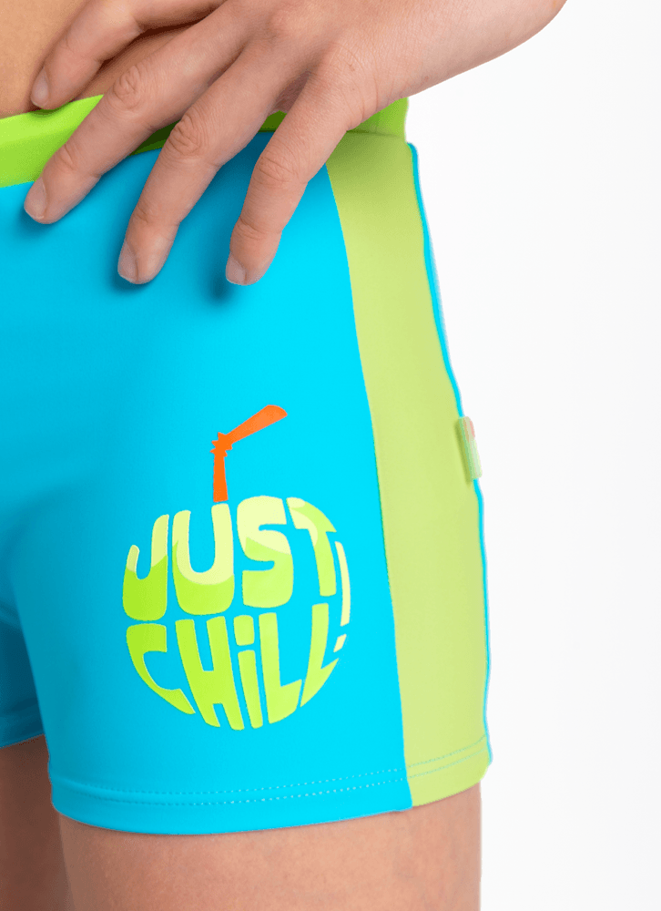 Sunga boxer Teen Jacaré Relax. Possui cós com elástico embutido e cordão externo para ajuste. Estampa em silk e recortes coloridos nas laterais.