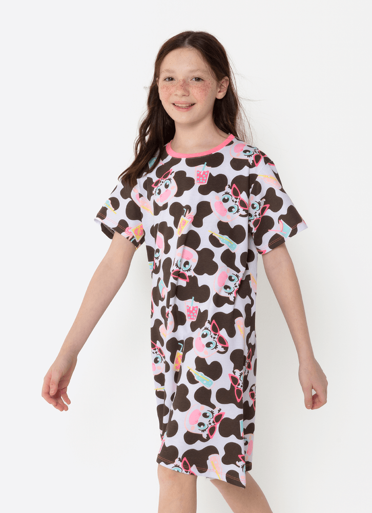 Camisola Manga Curta Algodão Menina Teen Vaca Summer