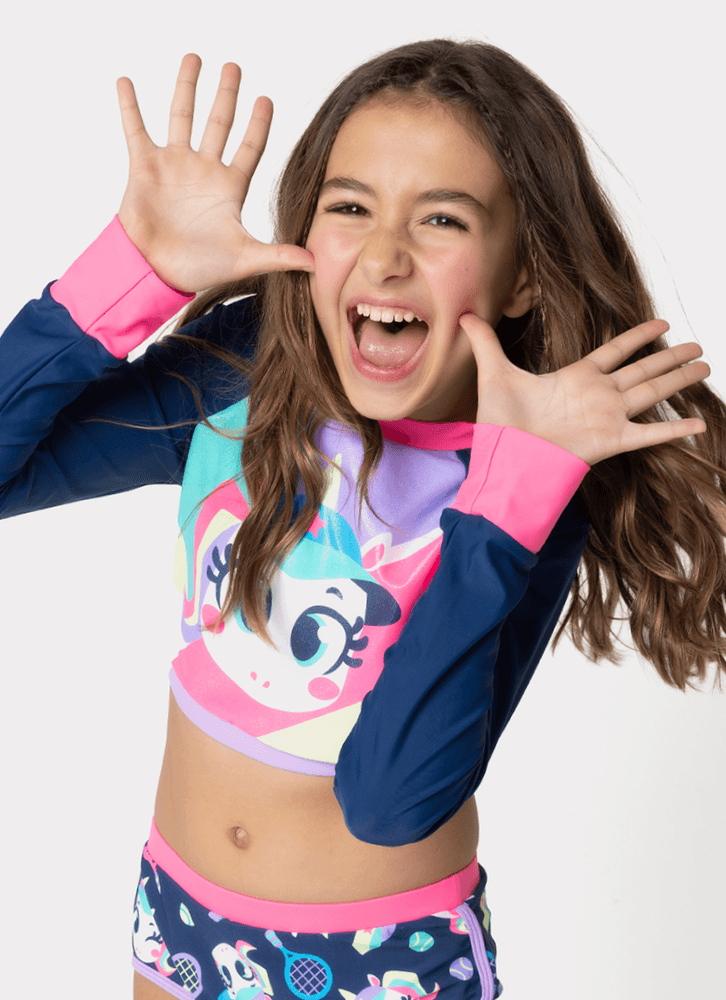 - Diferencial do produto: tecido com toque macio; produto altamente resistente ao cloro; proteção solar UV (não substitui o uso de filtro solar); conforto.
