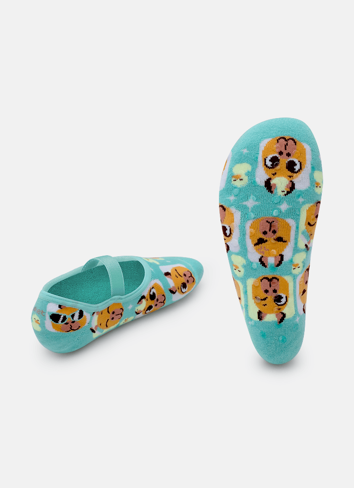 Meia com modelagem de sapatilha e desenho divertido de capivara.