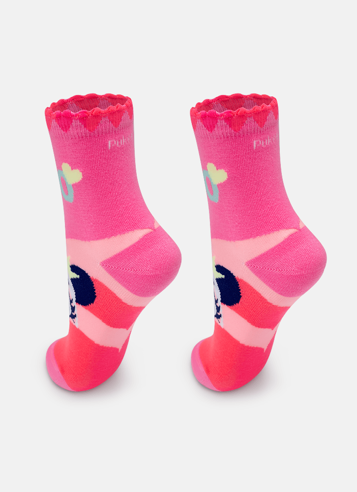 Possui cano de altura média com detalhe de picot de coração no punho.