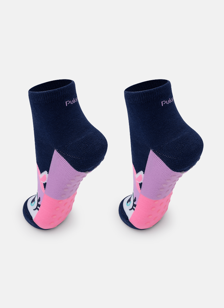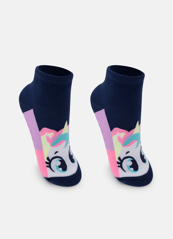 Meia micro com desenho divertido de unicórnio. Possui cano na altura do tornozelo.