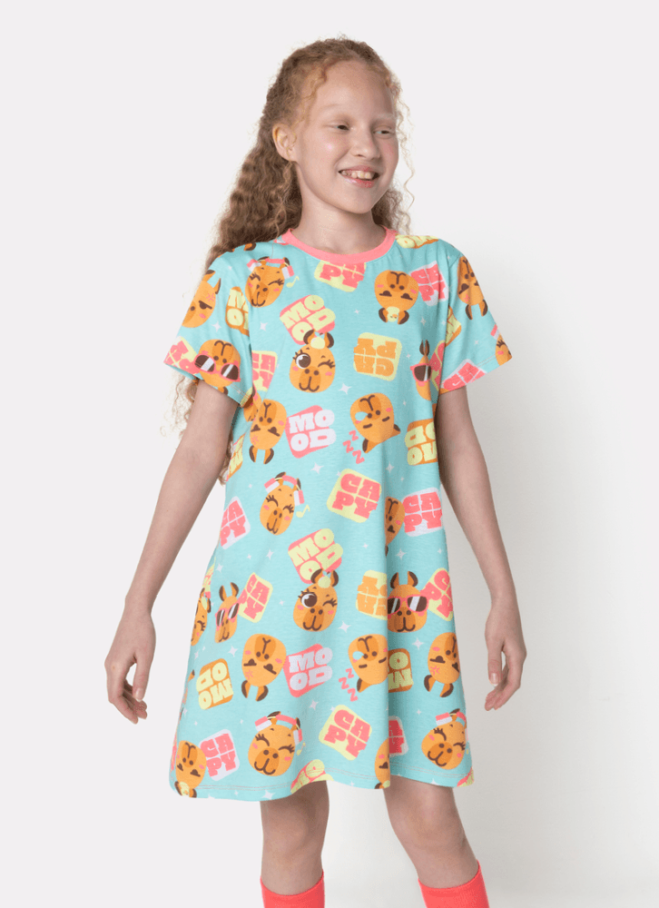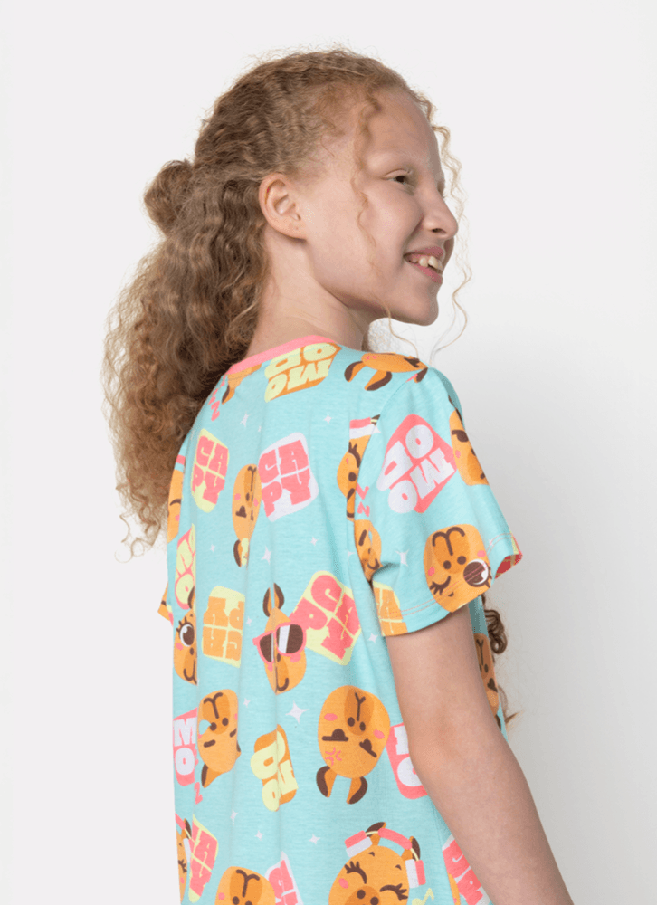 Camisola Manga Curta Algodão Menina Teen Capy Bora