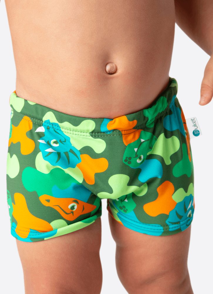 Sunga boxer em estampa corrida. Possui cós com elástico embutido e cordão interno para ajuste.