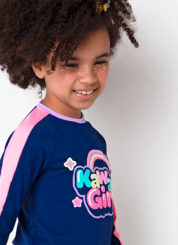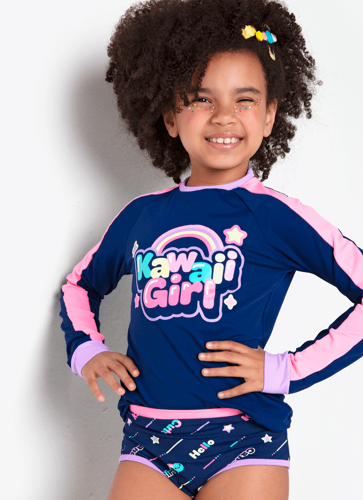 - Diferencial do produto: camiseta com recorte na manga, tecido com toque macio; cós com elástico interno, produto altamente resistente ao cloro; proteção solar UV (não substitui o uso de filtro solar); conforto.