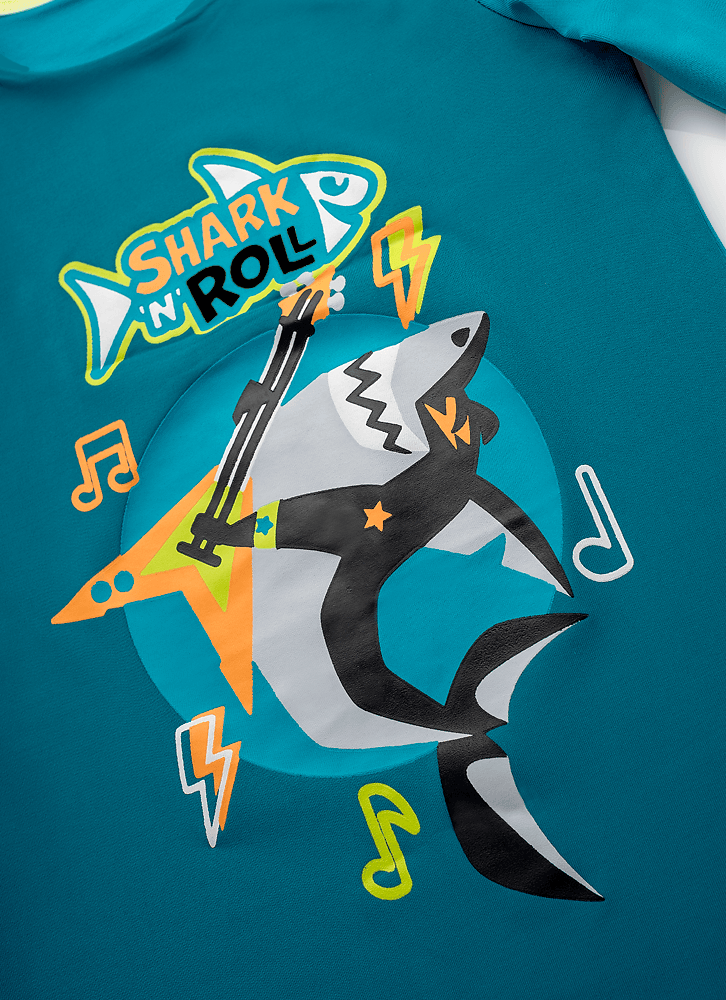 Macacão Manga Longa Microfibra Bebê Menino Tubarão Rockstar