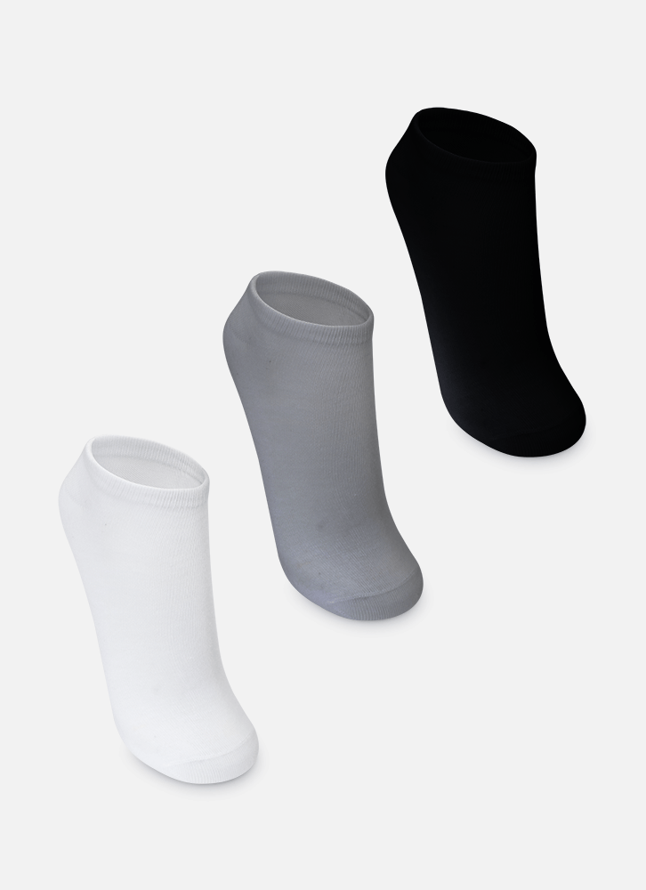 Kit com 3 pares de meia sapatilha com cano curtinho, produzida com algodão macio e poliéster.