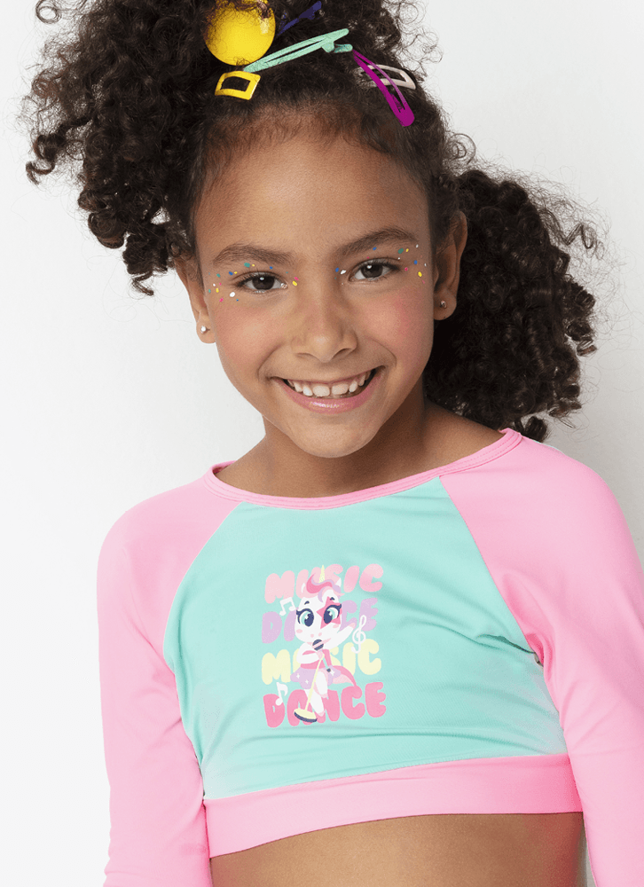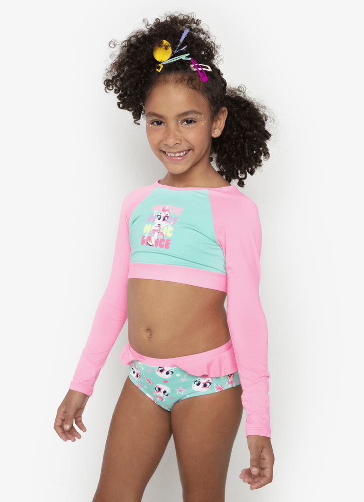 Tecido externo: 92% poliéster e 8% elastano. Tecido interno: 90% poliamida e 10% elastano. Ocasião de uso: Ideal para usar em clubes, academias, piscinas e praia. Diferencial do produto: estampa frontal toque zero, glitter salpicado por toda a peça, tecido com toque macio, altamente resistente ao cloro; proteção solar UV (não substitui o uso de filtro solar); conforto. Como lavar e conservar bem meu produto: Lavagem à mão, temperatura máxima de 40c; não alvejar / não branquear; não secar em tambor; secagem em varal; não passar; não limpar a seco, não remover manchas com solventes; não guarde a peça úmida; não use amaciantes ou produtos com alvejantes a base de cloro; evite contato com superfícies ásperas; cloro e bronzeadores podem manchar o produto; após o uso, enxague bem a peça com agua fria; a contínua exposição à luz forte e água clorada pode deteriorar alguns tipos de tecidos e cores. Garantia por defeito: Deverá ser encaminhado dentro da embalagem original; Sem indícios de uso; acompanhado de nota fiscal e com todos os itens constantes na solicitação de troca.