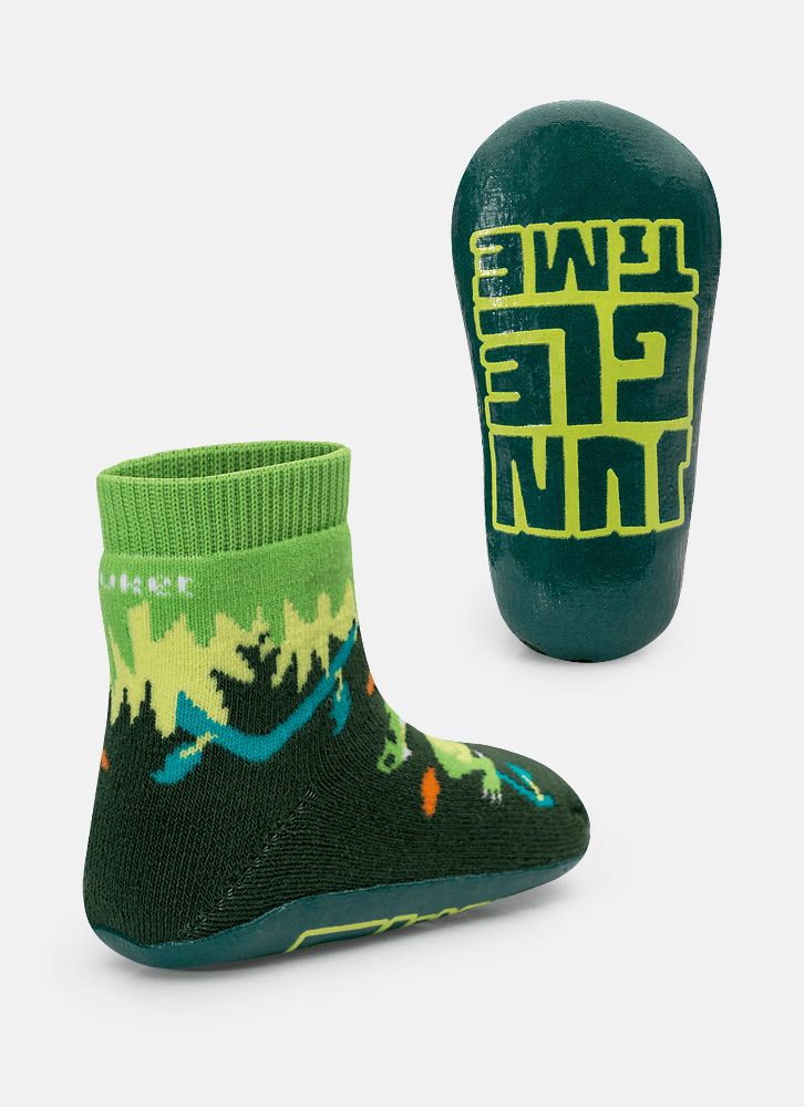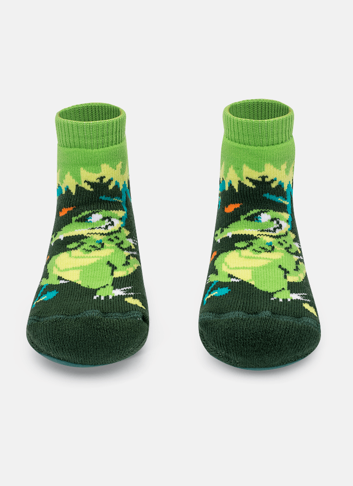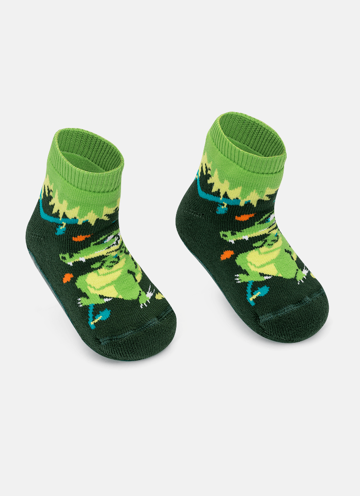 Meia com modelagem botinha atoalhada e desenho divertido de Jacaré Puket <3 - Produzida com algodão macio em sua maior parte - Desenho em poliamida. - Possui calcanhar verdadeiro - Solado com antiderrapante com aroma - Punho em rib muito confortável que pode ser usada dobrada ou não - Indicação de uso: Ideal para brincadeiras sem o calçado e uso no dia a dia, deixando você super estiloso. Lavagem e conservação: Lavagem à mão, não alvejar; não secar em tambor; não limpar a seco; secagem em varal por gotejamento a sombra; não passar ou utilizar vaporização; (mais informações, vide na etiqueta). Garantia: Deverá ser encaminhado dentro da embalagem original, sem indicações de uso, acompanhado de nota fiscal e com todos os itens constante na solicitação da compra.