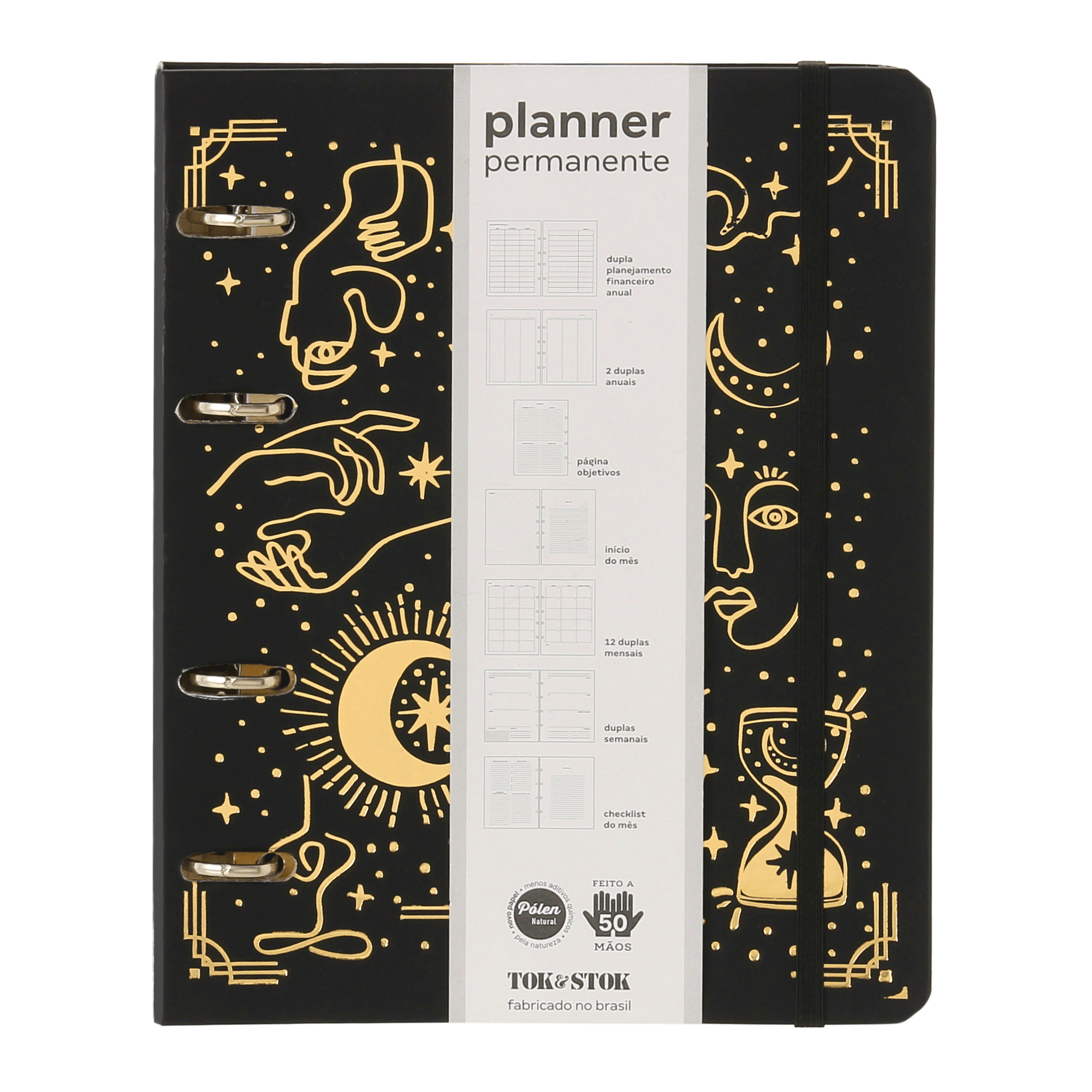 O Planner Mystical em formato A5 é perfeito para quem busca praticidade e planejamento eficiente. Com visão anual, mensal e semestral, ele ajuda a estruturar sua rotina com clareza. Inclui planejamento financeiro, páginas de objetivos e uma folha calendário de 2025 a 2027. Tudo em um único planner para você organizar sua vida com estilo. Possui formato fichário com 4 argolas em metal e permite que você substitua somente o miolo com os refis da mesma linha (vendidos separadamente).Deixe sua rotina extremamente organizada com os planners Mystical da Tok Stok.